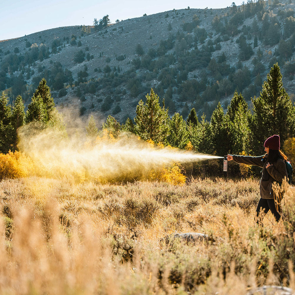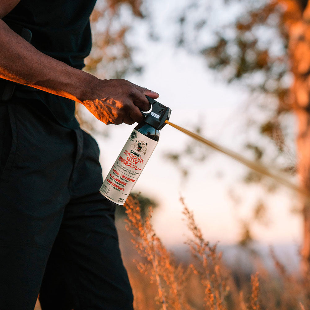 高圧ガスで12mの長距離噴射を実現。登山やキャンプ、釣り、狩猟など熊が出没する地域にお出かけの際に、リスクを軽減することができます。噴射ヘッドに設置したループに指をかけることで片手でも素早く確実にスプレーを操作することができます。さらに噴射口の向きを間違えることなく狙いを定められるよう設計されています。誤噴射を防ぐため、付属のセーフティークリップを正しく装着し持ち運んでください。