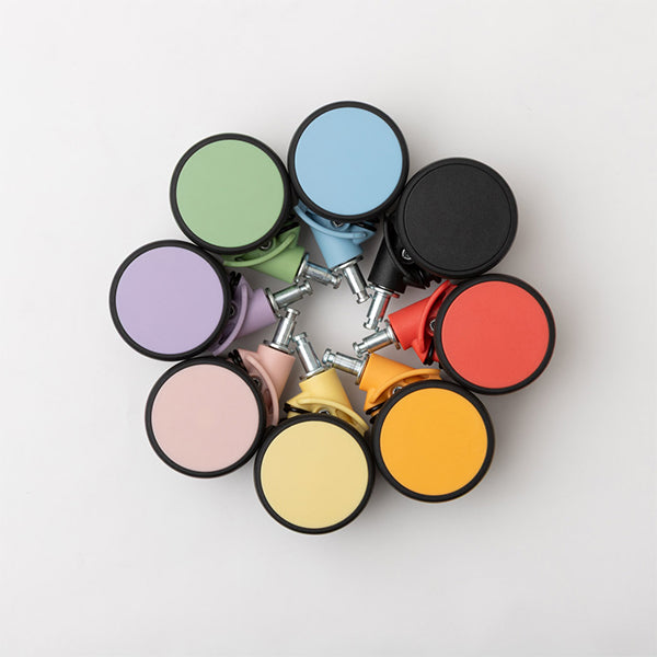 レバー操作で簡単に脱着ができ、他のカラーのキャスターに付け替えることでデザインのカスタマイズが楽しめます。