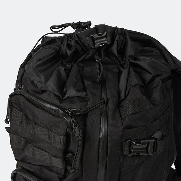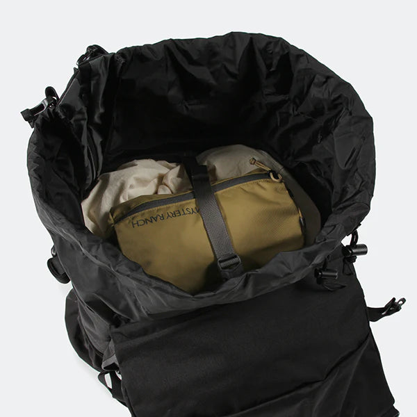 メインコンパートメントにはトップリッドを外し、シュラウドを開けてアクセスします。シュラウド上部にはバックル、サイドジッパーがありますのでここを開口することで、大きく開き荷物の出し入れ、整理整頓が非常に行いやすくなっています。パッド入りのラップトップPCスリーブは、ボトムから少し底上げされているので、パックを置いた際に衝撃がダイレクトに伝わらない設計です。本やタブレットを入れるドキュメントスリーブ、両サイドには縦型のポケットを配置し、ウォータボトル、折り畳み傘、小ぶりな三脚などをスマートに収納することができます。