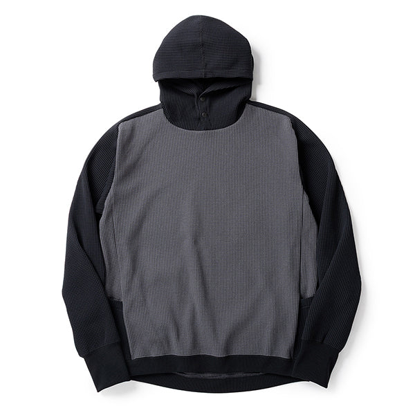 吸汗速乾・UVカットなどの機能を備えたポリエステルワッフル生地を使用したプルオーバーパーカー。
